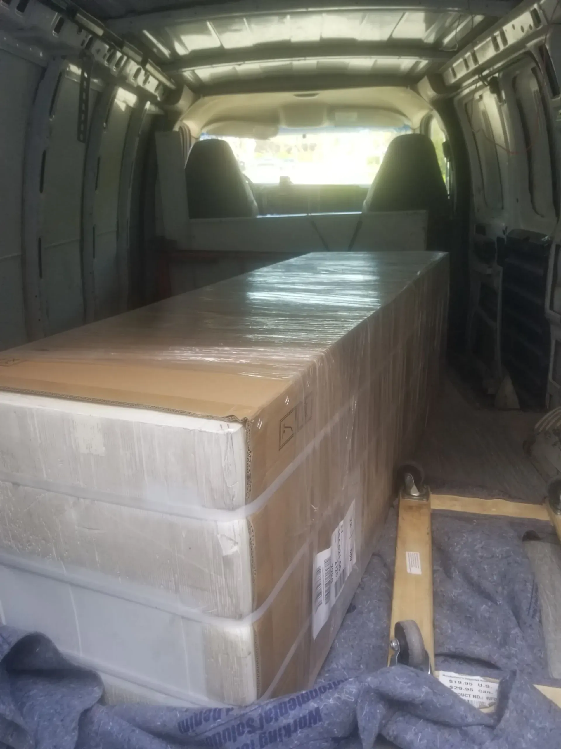 Our small van offers a spacious cargo bay measuring 5.5 ft × 4 ft × 4 ft with a clearance height of 6 ft 4 in, making it ideal for underground parking and tight spaces. Designed for versatility and convenience, it comfortably fits 6 to 10 medium-sized boxes, a double bed with frame, a two-seat sofa, side table, and even a standard desk. You can also transport a tall bookshelf or dresser, plus linens and smaller cartons—all in one trip. This van is perfect for micro- or mini-moves, handling a variety of bulky items and boxes efficiently. Whether you're setting up a dorm, moving home office furniture, or delivering event supplies, our van’s generous dimensions ensure easy loading and safe transport. With its combination of size and low clearance, it’s the smart, cost-effective choice for mid-size to large items. Book now for a smooth, reliable moving experience tailored to your needs.