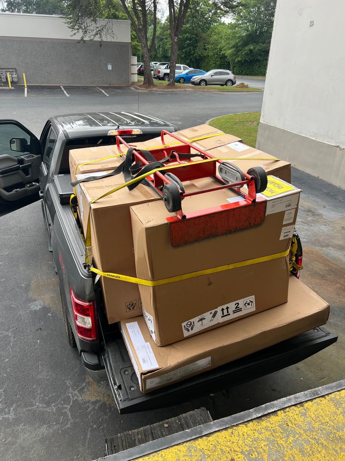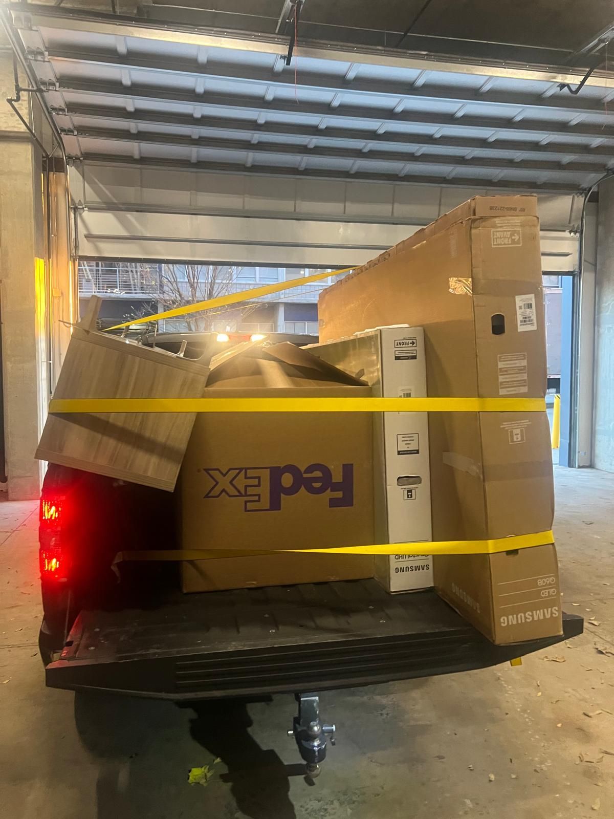Our pickup truck is ideal for hauling a wide range of outdoor and bulky items with ease. Whether you're transporting a large patio grill and several folding chairs or tackling a landscaping job with bags of soil, potted plants, or lumber, this truck handles it all in a single trip. For construction needs, you can load drywall sheets, piping bundles, or stacks of cinder blocks securely in the open bed. It’s also great for moving household goods like a loveseat, dresser, or even a six-person dining set—just use a tarp and straps for safe transit. With a height clearance of 6 ft 7 in, it fits some underground garages, though we recommend verifying parking limits before booking. Built for durability and versatility, our pickup truck offers a no-hassle, reliable solution for your toughest jobs. Book today for efficient transport tailored to outdoor projects, construction tasks, and bulky home items.